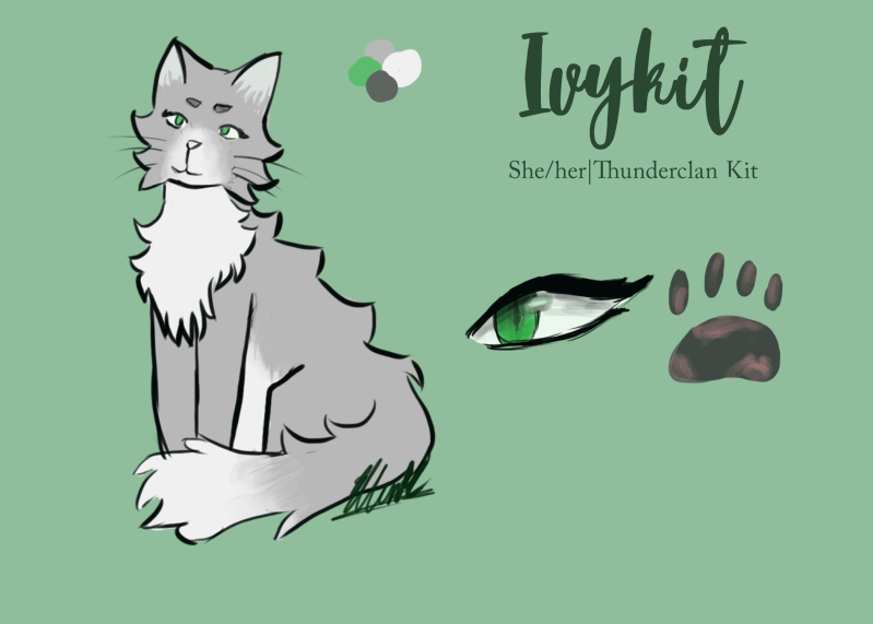 Overview: kind of like an older, protective sister. she will always defend her other siblings. She is a natural leader, and also very thoughtful. she is very outgoing and kind of loud as a kit, but as she becomes older, she becomes more and more reserved.
